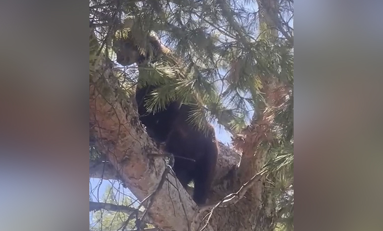 Este viernes se atendió el reporte de un oso que estaba trepado en un árbol en calles de la colonia Lomas de Lourdes, en los alrededores del cortijo.
