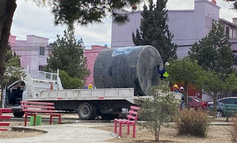 Al ser restablecido el servicio que llega diariamente al sector, este martes una brigada de Agsal acudió al lugar para retirar un tinaco que se colocó en la plaza.